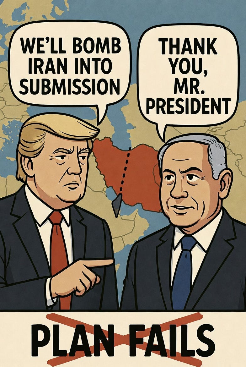 President Trump and Prime Minister Netanyahu planned to bomb Iran into submission to Israel’s demands. The plan failed.